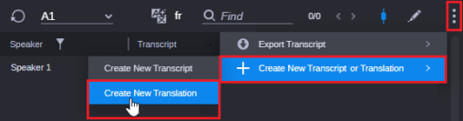 If the button is not shown, click the More Options button and select Create New Transcript or Translation > Create New Translation from the menu.