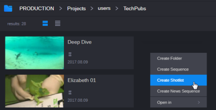 Right-click the folder (or within the folder) and select Create Shotlist.