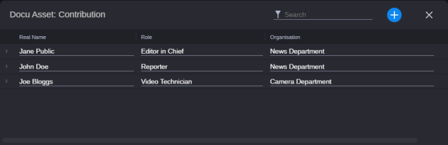 In the Metadata tab, each multi-value compound property is presented as a table, with the labels of the sub-attributes as column headers. You can resize the columns but you cannot change the column order in the table. Note that a changed column width is not saved with the asset, after re-opening the asset the default column width is restored. If the sub-attribute value cannot be displayed, the text ends in an ellipsis. Hover the mouse-pointer over the field to show a pop-up with the entire value.
