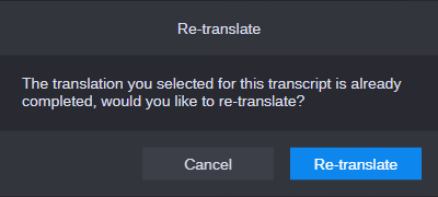 • "The translation you selected for this transcription is already completed, would you like to re-translate?"