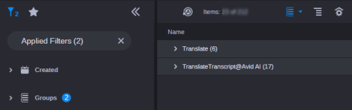 All filters are cumulative. The best approach to display Transcribe and Translate jobs in the Process app is to use the Groups filter and Show Hierarchy toggle, as described in the following procedure.